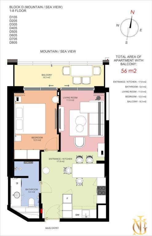 | Total square: | 56 m2 |