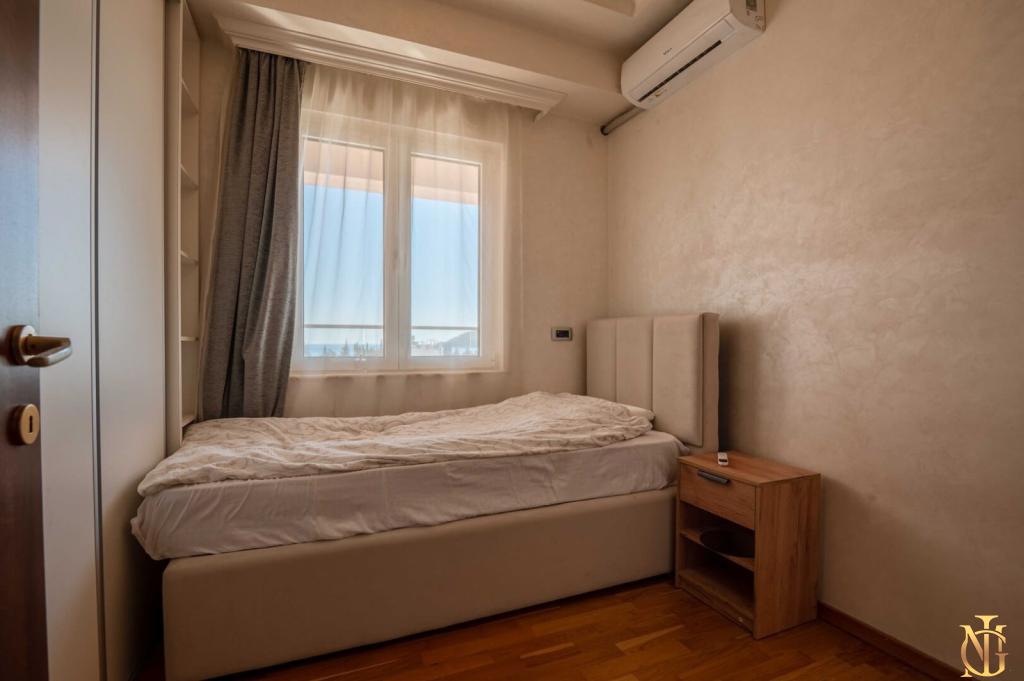 Просторная и светлая квартира в Будве, идеально подходит для комфортной жизни, семьи или сдачи в аренду. Удобная планировка с двумя санузлами обеспечивает приватность и комфорт.