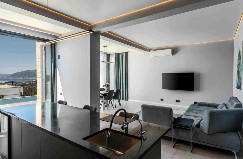 Современная, полностью меблированная вилла площадью 180 м² с бассейном и видом на Тиватский залив