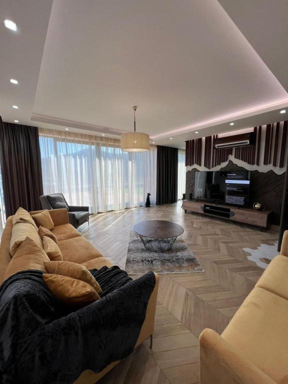 Локация мечты: всего 1 км до моря — наслаждайтесь близостью пляжей без шума и суеты туристов. Панорамная гостиная: южная сторона, залитая солнцем, с огромными окнами, открывающими захватывающий вид. Эксклюзивная терраса 80 м²: покрытие плитка, стильная подсветка и просторное джакузи на 8 человек — идеальное место для вечеринок или релакса под звездами. Простор и комфорт: 100 м² на 6-м этаже современного дома с лифтом. Премиум-качество: элегантный дизайн интерьера, мебель Enza Home и бытовая техника Bosch, электрические ролл-ставни, инверторные кондиционеры в каждой комнате. Удобство парковки: личное место в подземном паркинге + дополнительная парковка перед домом. Этот пентхаус — не просто квартира, а стиль жизни для тех, кто выбирает лучшее.