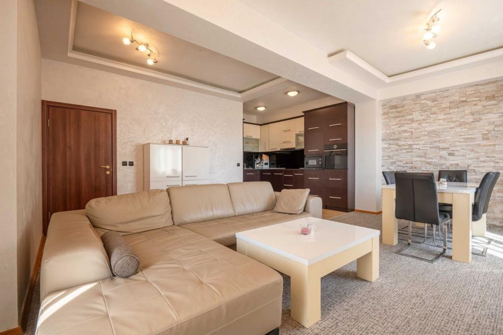 Просторная и светлая квартира в Будве, идеально подходит для комфортной жизни, семьи или сдачи в аренду. Удобная планировка с двумя санузлами обеспечивает приватность и комфорт.