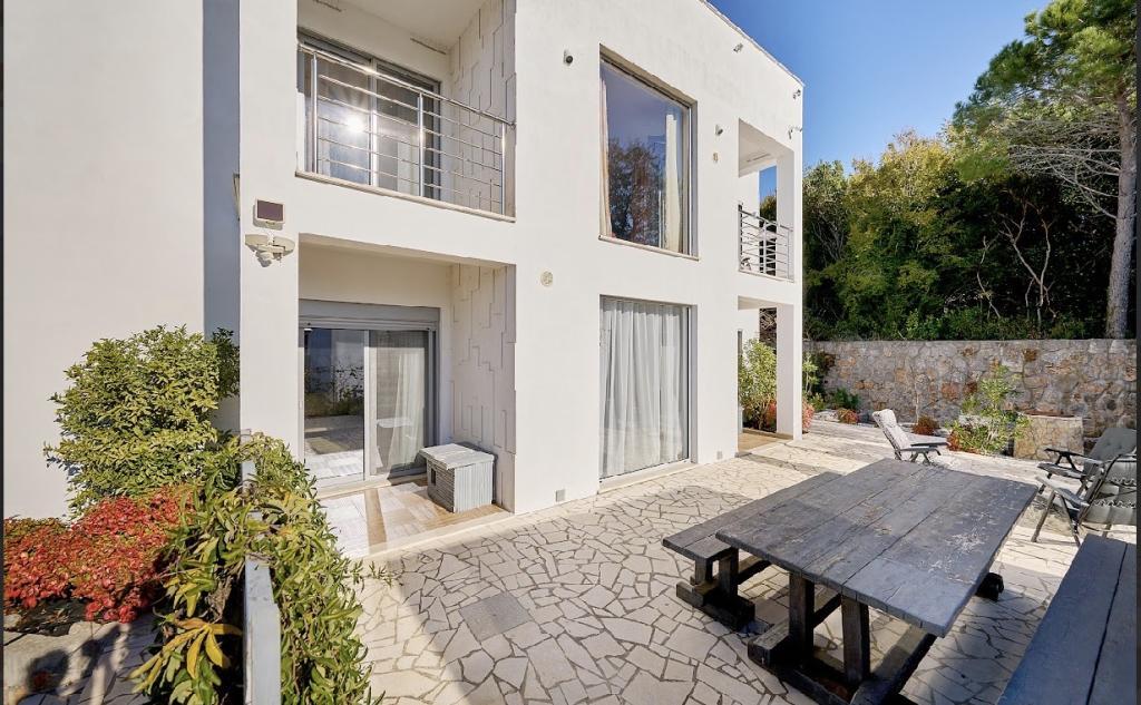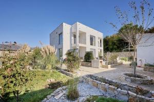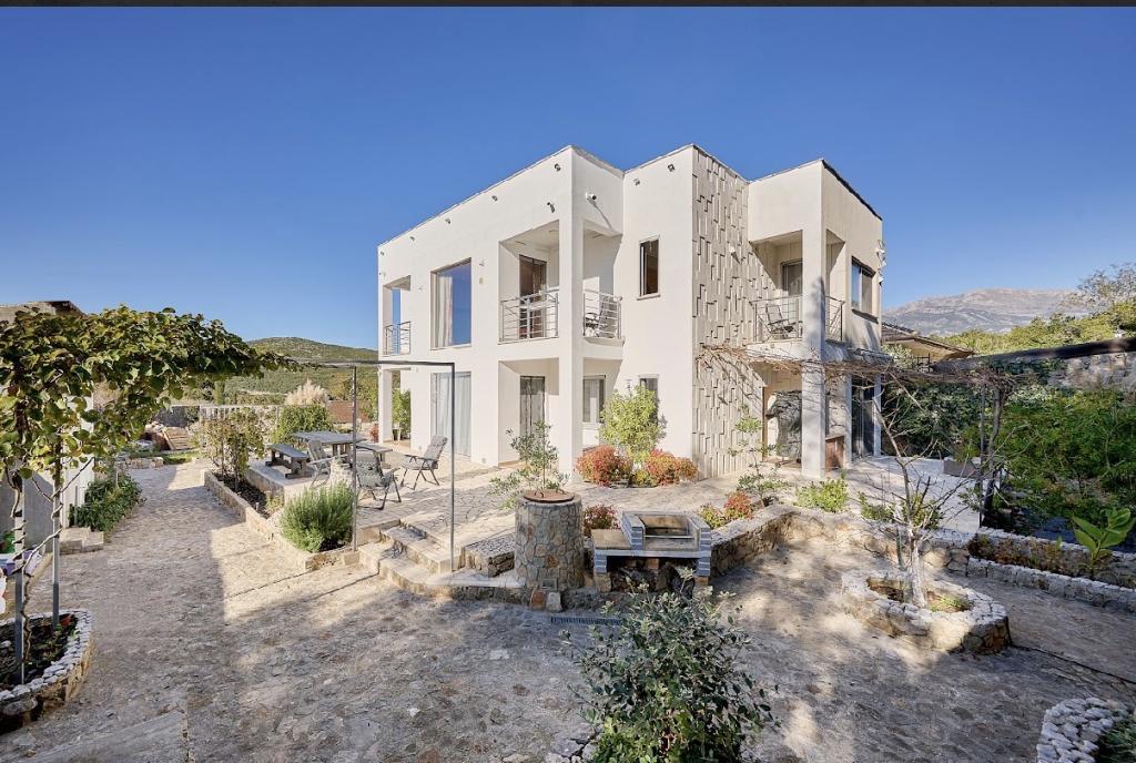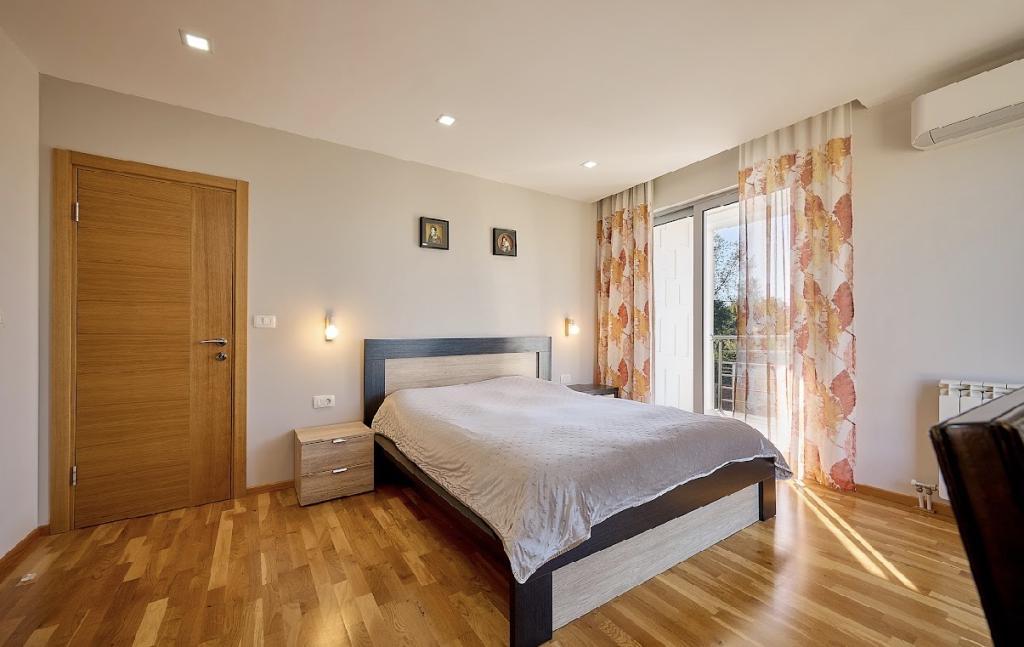 с дизайнерским фасадом и панорамными окнами, в поселке Кримовицы, всего в 15 минутах от Будвы.