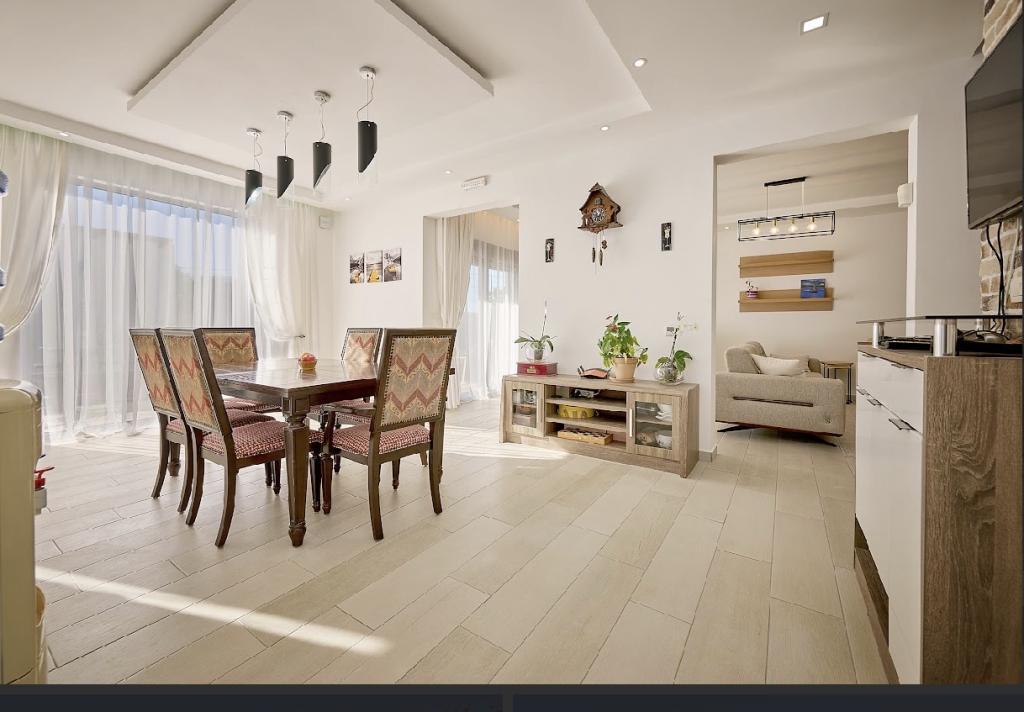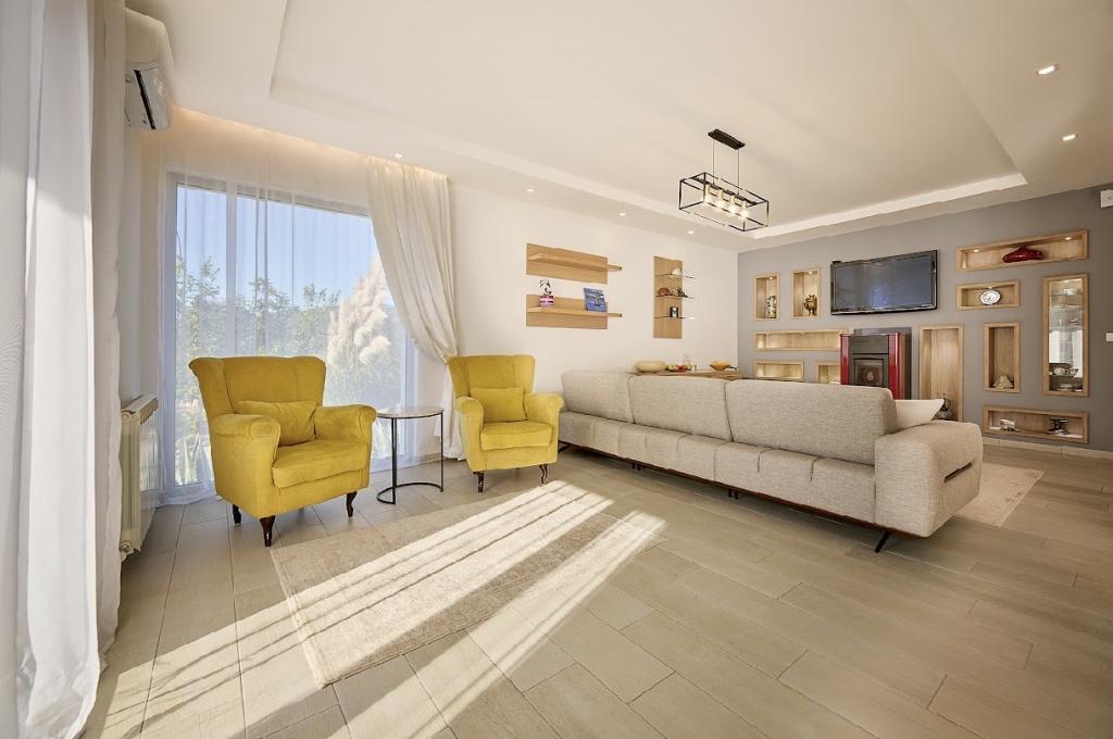 Удобства: - Отопление: пелетный котел/радиаторы, теплые полы. - Инвентарные кондиционеры . - Видеонаблюдение, проводной интернет. - Рециркуляция дождевой воды - Ландшафтный дизайн - Зона барбекю ( мангал, тандыр) хозпостройка, парковка на несколько автомобилей.